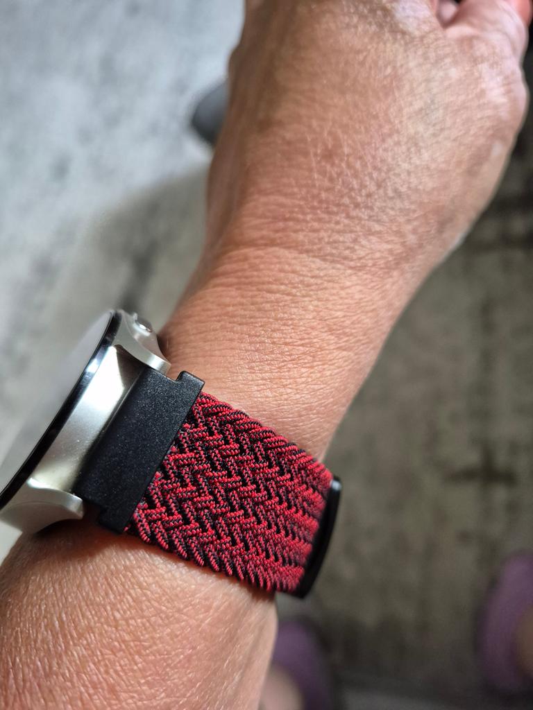 Crafted from premium elastic woven nylon, this band is incredibly soft, breathable, and lightweight. It conforms to your wrist for a personalized fit, ensuring maximum comfort during workouts, workdays, or weekend adventures.