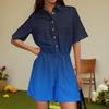 Women's Fashion V-neck Jumpsuit Plaid Casual Short Sleeve Top Jumpsuit