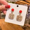 925 Silver Needle Happy Earrings Women's New Year Red Earrings Retro Autumn and Winter Personality Temperament Versatile Earrings