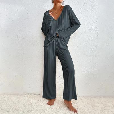 Women's Pajamas Suit Autumn and Winter Long Sleeved Pajamas Pants 2 Piece Set Sexy V Neck Knit Warm Soft Pyjamas Homewear Femme
