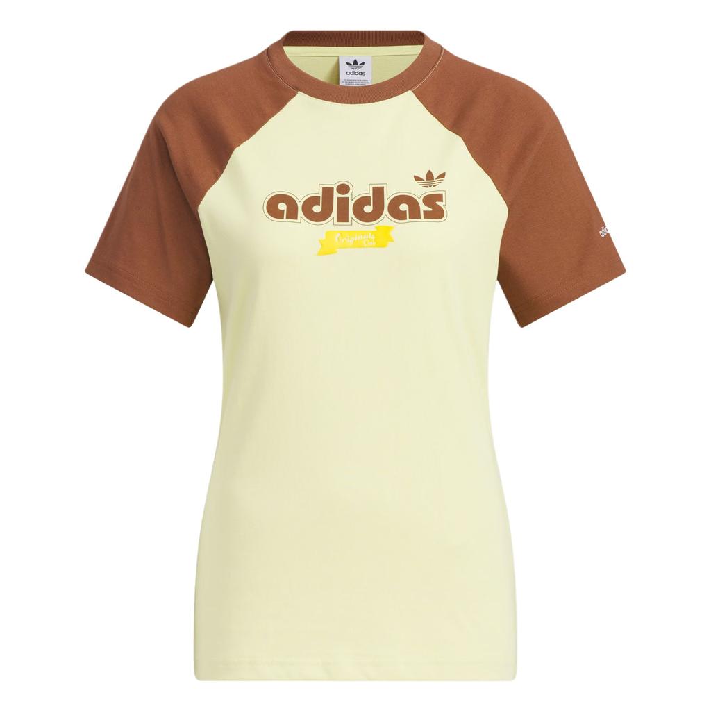 adidas Originals Retro Camp Graphic Loose Comfortable Simple Round Neck Short Sleeve Raglan T-Shirt Women T-Shirt Powder-Yellow Soft-Brown JM8007