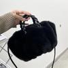 Plush Shopping Bag Shoulder Bag for Women Soft Feminine Fur Ladies Hand Shoppers Bag Black Main Bag