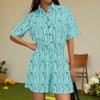Women's Fashion V-neck Jumpsuit Plaid Casual Short Sleeve Top Jumpsuit