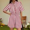 Women's Fashion V-neck Jumpsuit Plaid Casual Short Sleeve Top Jumpsuit