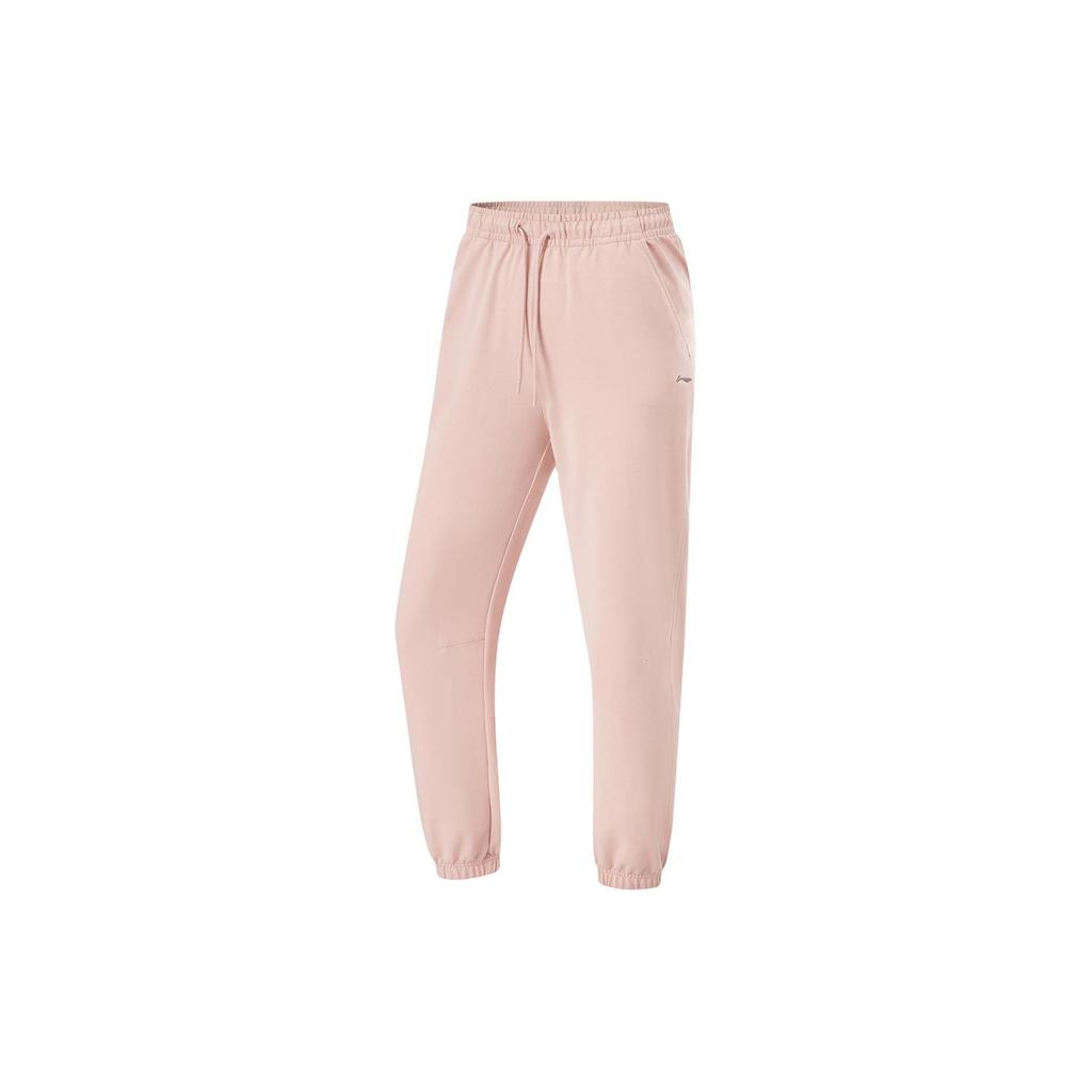 Li-Ning Solid Color Drawstring Mid Waist Casual Knit Sports Pants Women Bottoms Chinaware-Pink AKLU834-7
