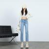 Discover the perfect blend of style and comfort with these high-waisted slimming straight-leg jeans, designed for the 2024 Autumn/Winter season. Made from premium denim material, these chic petite cropped pants offer a flattering fit with their high waistline and French stretch design. Ideal for any occasion, they seamlessly combine elegance and casual ease, making them a versatile addition to your wardrobe.