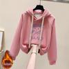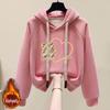 Stay cozy and stylish this winter with the Women's Fleece-Lined Hooded Sweatshirt, designed for the 2024 season in a chic Petite Winter Dopamine Style. This sweatshirt features long sleeves and a thick build, perfect for maintaining warmth during cold days. The hooded neckline adds an extra layer of comfort, while the convenient pockets provide both functionality and a touch of flair. The unique fur material enhances the plush feel, making it an essential addition to your winter wardrobe.
