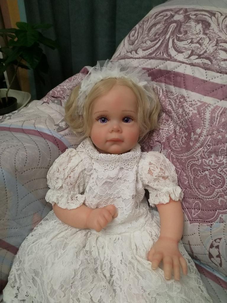 55CM Reborn Doll Maggie Purple Eyes Hand-Detailed Painting with Visible Veins Lifelike 3D Skin Tone Newborn Doll For Children Birthday Gift