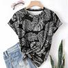 Casual Sports Women's T-shirt Round Neck Short Sleeved Plant Brown Paulownia Tree Breathable Lightweight Shirt