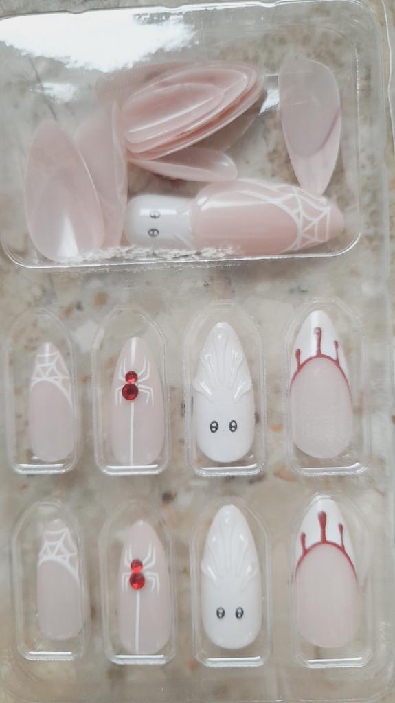 24-Piece Semi-Handmade Ghost Spider French Blood Drop Press-On Nails
