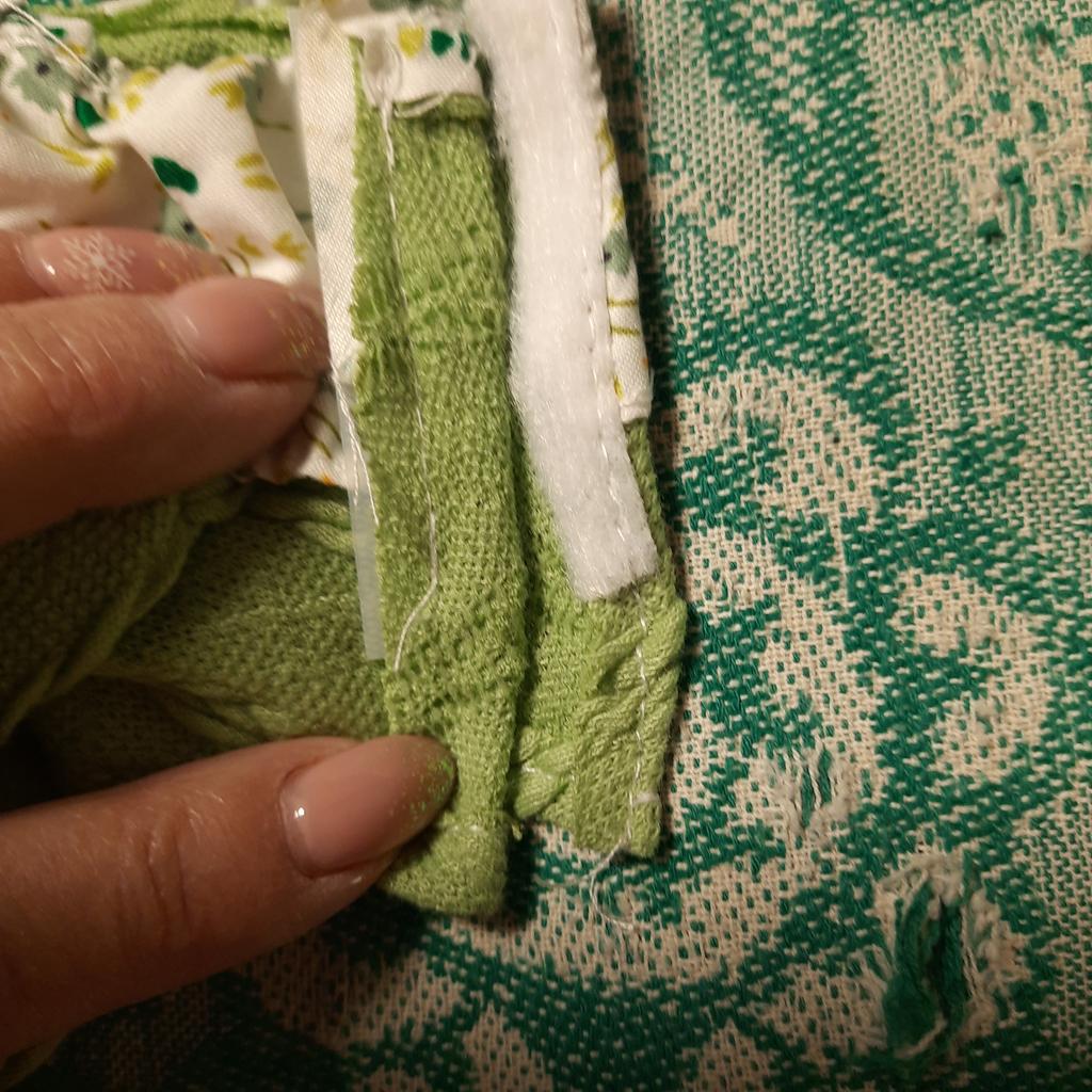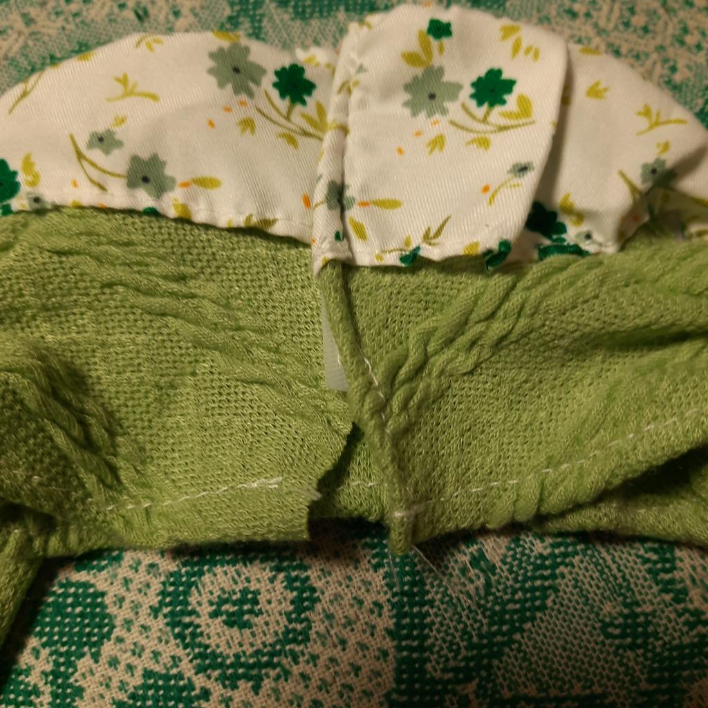 The little suit is nice: beautiful, the material is pleasant, the closure at the back is Velcro. Thank you. I recommend it.