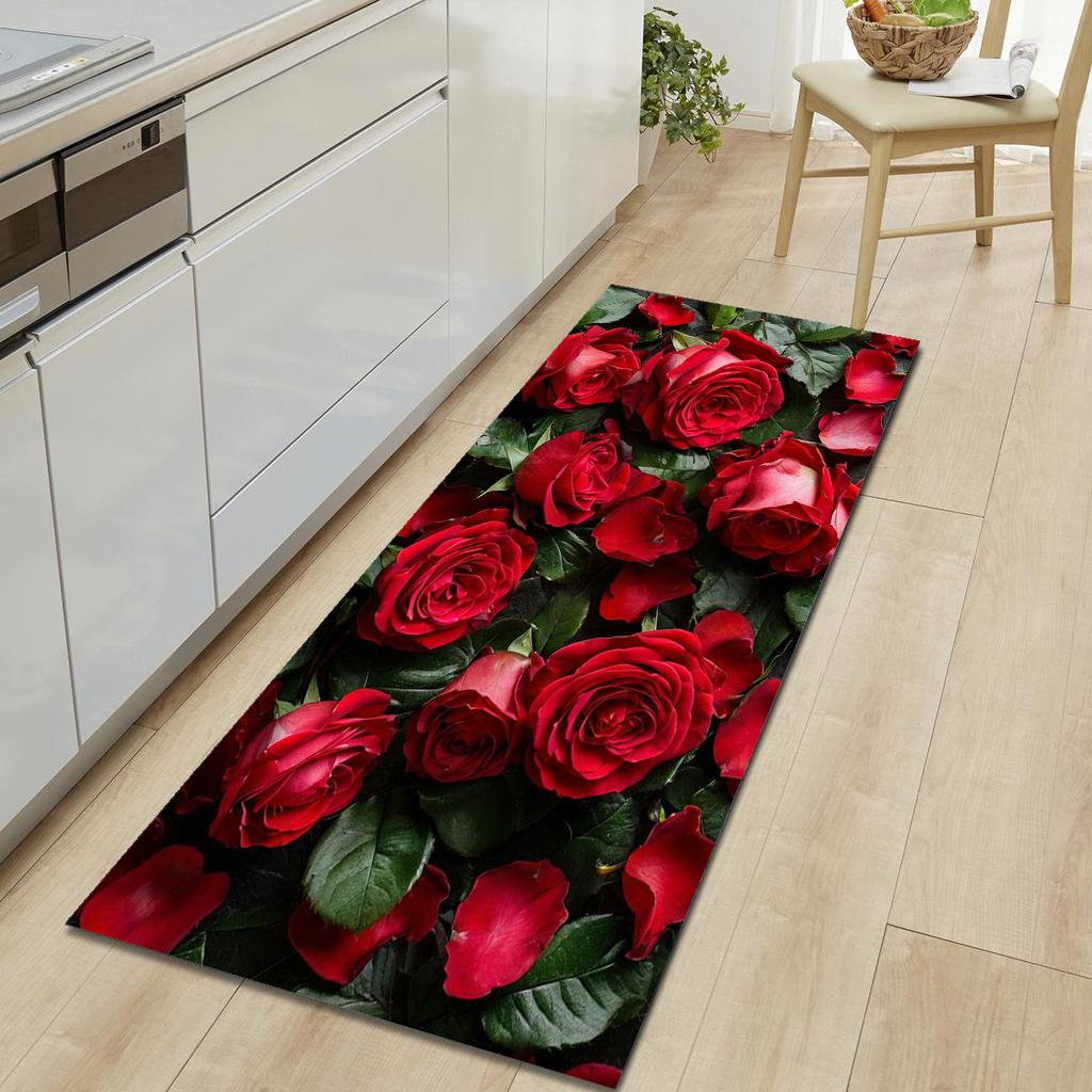 1Pcs Cat Rose Pattern Floor Mat Modern Kitchen Polyester Rug Non-Slip Colorful Indoor Carpet, For Home Bathroom Bedroom Living Room Decor