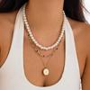 Ins Style Fashion Imitation Pearl Multi-layer Crystal Necklace Women, Simple Moon Pendant Stacked Jewelry