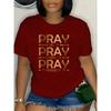 Women's Personalized Dark Red Solid Color 3D Letter Printed Personalized T-shirt