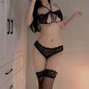 Sex Underwear Sexy Lace Temptation Three-point Bra Underwear Women's Open Transparent Pajama Set H