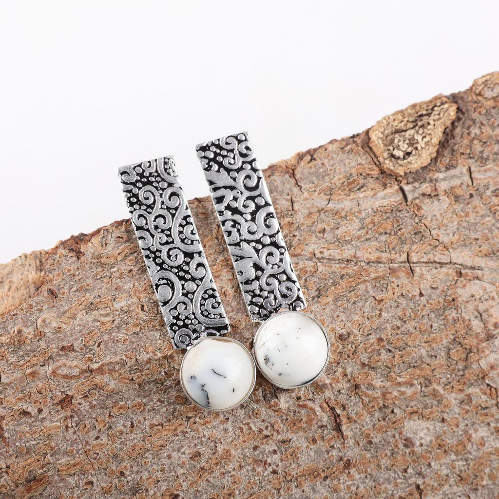 Dendritic Opal Gemstone Jewelry, 925 Solid Sterling Silver Earrings, Handmade Silver Everyday Earrings For Engagement Gift