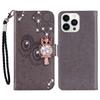 For iPhone 16 Pro Wallet Case Owl Flower Imprinted Rhinestone Leather Cover