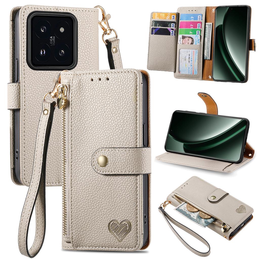 For Xiaomi 14T Pro Case RFID Blocking Zipper Pocket Leather Wallet Phone Cover with Strap