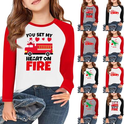 Girls Long Sleeve Love Valentine's Day T Shirts Kids Fall Tops Crewneck Basic Tees 5-14Y