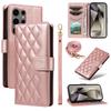 For Samsung Galaxy S25 Ultra Case Wallet Rhombus Leather Phone Cover with Shoulder Strap,Wrist Strap