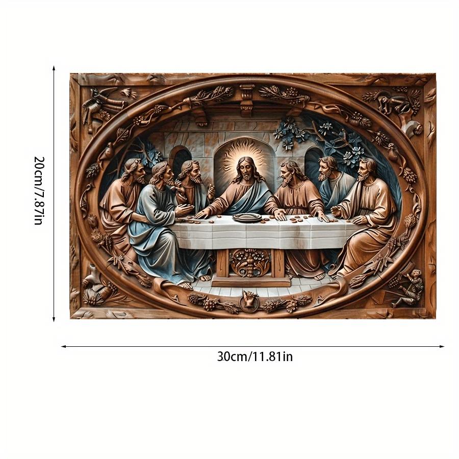 2d Flat 30*20cm, Religious Themed Wooden Wall Art: The Last Supper Scene, Christian Decor, for Kitchen, Garden, Bedroom, Cafe, Bar.