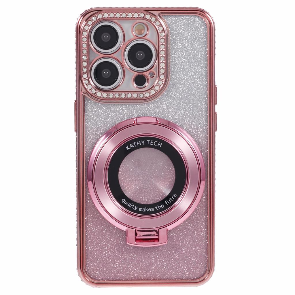 For iPhone 12 Pro Max TPU Case Gradient Kickstand Cover with Rhinestone Lens Frame