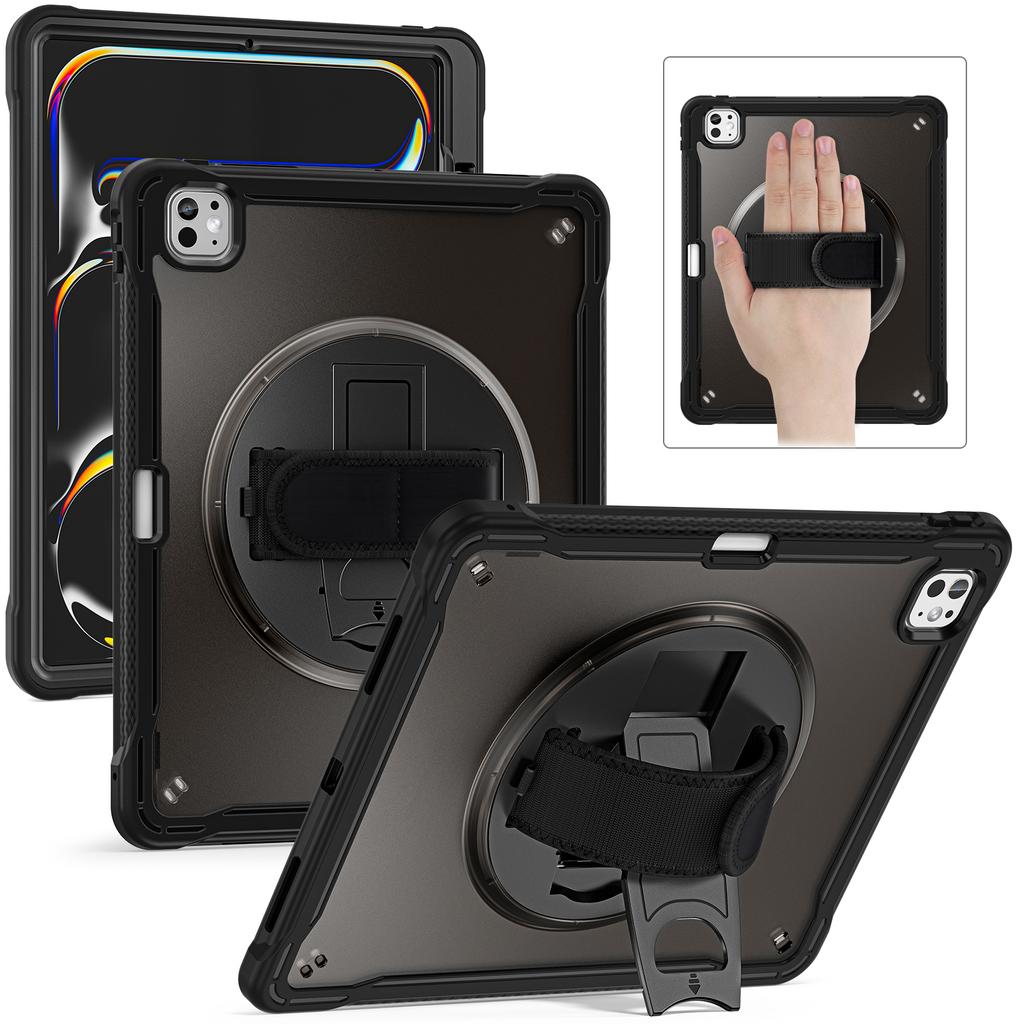 For iPad Pro 13 (2024) Case Kickstand PC+TPU+Silicone Tablet Cover with Rotary Hand Strap