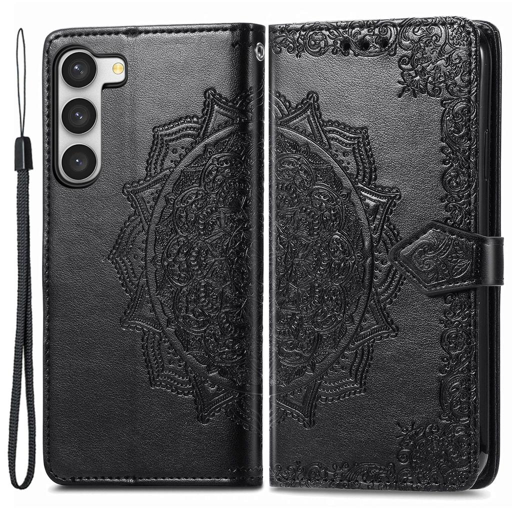 For Samsung Galaxy S23 Mandala Pattern Embossed PU Wallet Folio Case Stand Shockproof Protection Cover with Strap