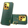 For Xiaomi Redmi 12C 4G Ring Kickstand Leather Coated TPU Anti-drop Case Crocodile Texture 6D Electroplated Phone Cover