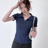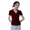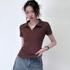 A New Polo Neck Short-sleeved T-shirt for Women In Summer with A Unique Pleated and Cinched Waist Design
