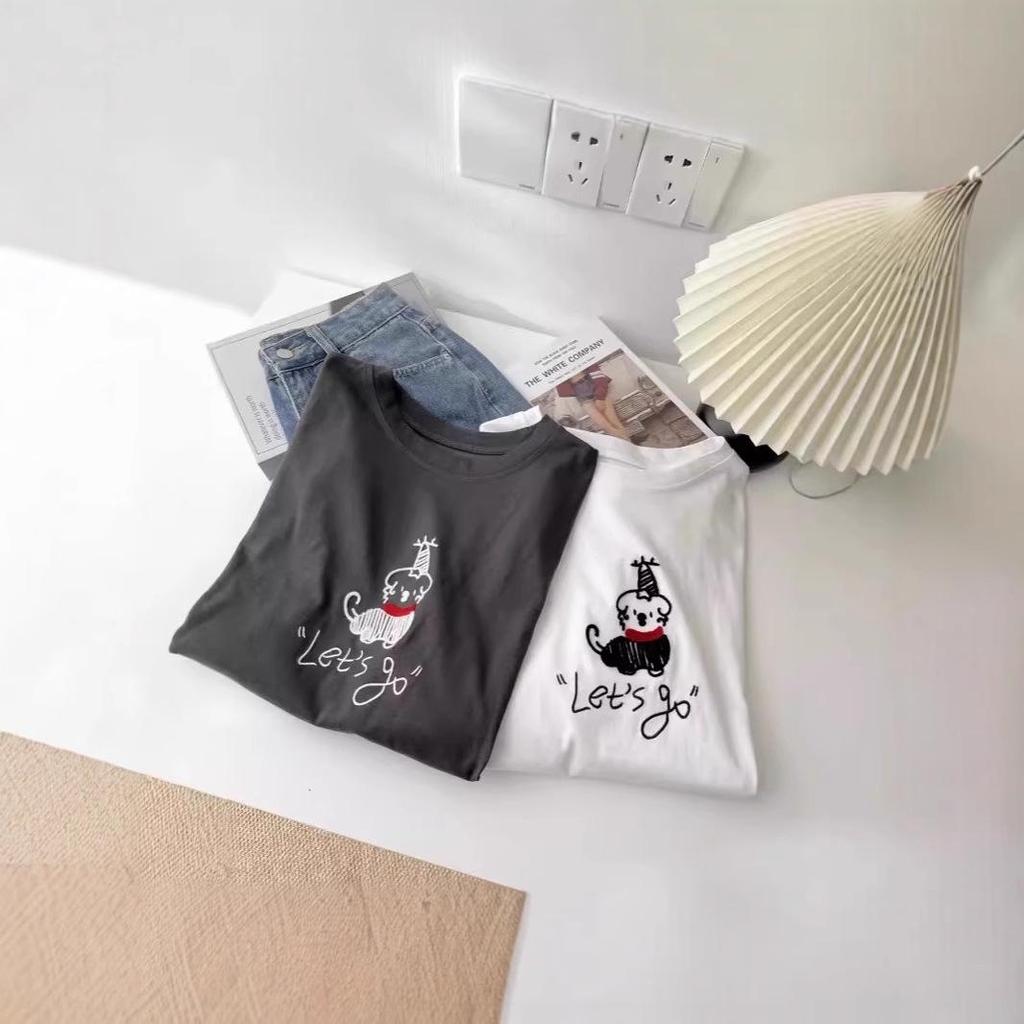 Korean Age-Reducing Red Scarf Puppy Embroidered Women's T-Shirt - Soft Cloud Cotton Brushed Short Sleeve Spring/Summer 2025
