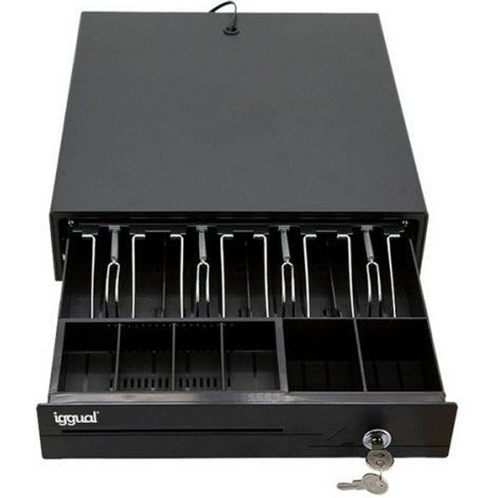 Tiroir Caisse Enregistreuse - Iggual - IRON-10 - Noir - 10 Compartiments - Ouverture Manuel/Automatique