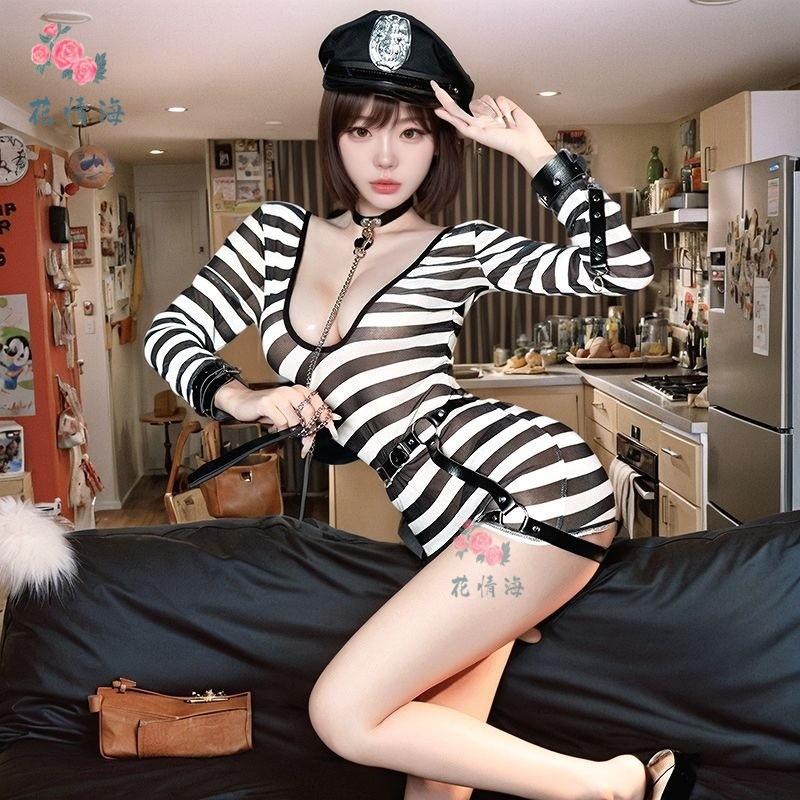 Sex Underwear Sexy Pure Desire Wind Cos Prisoner Uniform Black and White Striped Transparent Yarn Uniform Women