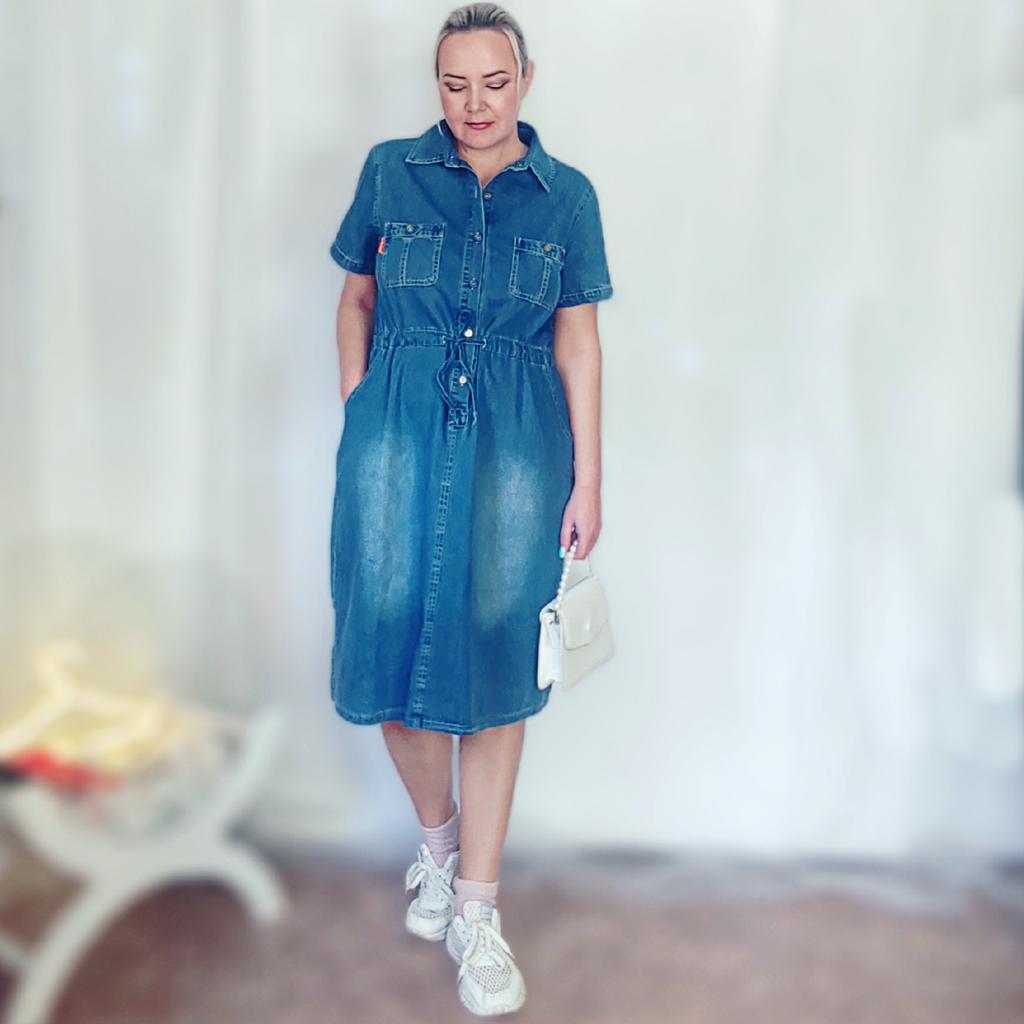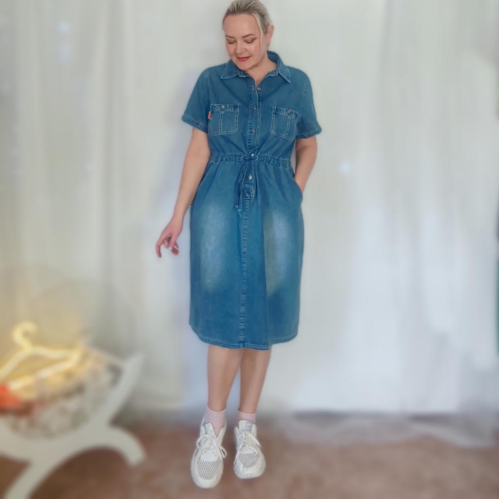 Cute plus size denim dress ๐! Delivery time ๐:21 days to Germany. โป๏ธScope of delivery: Included in the scope of delivery is a beautiful dress ๐ in the corresponding size. The product is only available in this variant. It is available in sizes from M to 3XL. I ordered the product in size M and the dress ๐ fits me great and the color is exactly as pictured. ๐ค๐ค๐ค You could order one size smaller, it would also fit ๐. Normally I wear size 36( S).,I weigh 53 kg distributed over 167cm. The dress fits true to size! ๐Quality โป๏ธ: The dress is light and beautiful. โ ๏ธ๐The fabric is very pleasant on the skin. The dress ๐is opaque. It's Mega for the summer. I liked the color of the dress best. โ ๏ธRegarding the material composition: Cotton + Polyester . However, the fabric is very comfortable on the skin. The dress comes down to about my knees. โณ๏ธSummary โณ๏ธ: A beautiful denim dress ๐ that must be ordered in your normal size. It runs true to size. I highly recommend the product.,5 stars ๐๐๐๐! Thank you Joom and the seller!!!๐ค๐ค๐ค๐๐