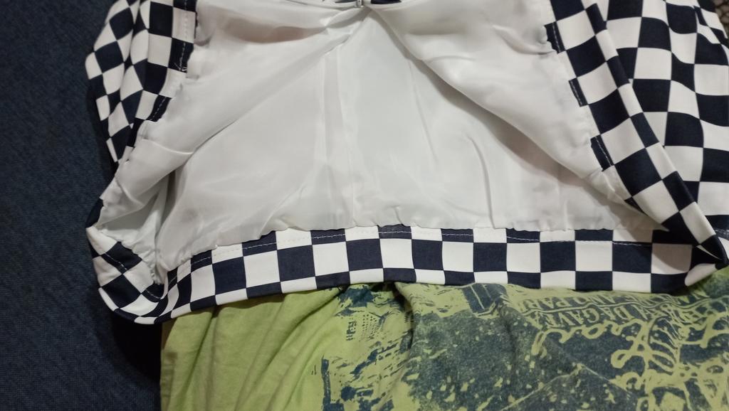 The price-quality ratio corresponds. It has short shorts inside. Two minuses are that it doesn't have any information attached anywhere on how to care for it, nor what size it is. And that it is sewn unaesthetically, I expected the whole design to be complete as in the product advertisement image, but it was sewn unaesthetically, and not all the squares are nicely in a line. I wanted to order the grey version as well, but I don't want to anymore, because I see that it will come sewn unaesthetically in the same way.