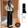 Experience exceptional comfort and warmth with these high-waisted, floor-length pants, perfect for the cooler autumn and winter months. Designed with a fleece lining, they ensure you stay cozy while maintaining a chic look. The pants are available in straight-leg, narrow, and wide-leg styles, making them versatile for any occasion. Made with a blend that includes spandex, they offer a sportive flair and a snug fit for petite frames, offering both flexibility and style. Ideal for those who appreciate a blend of fashion and practicality in their wardrobe.