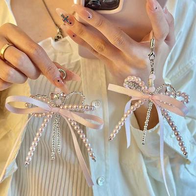 Butterfly Knot Keyrings Bowknot Keychain Pearls Beaded Bow Bag Charm Pendant Decoration