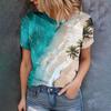 Summer Round Neck 3D Seaside Print Top Fashionable Casual Short Sleeved Women's T-shirts