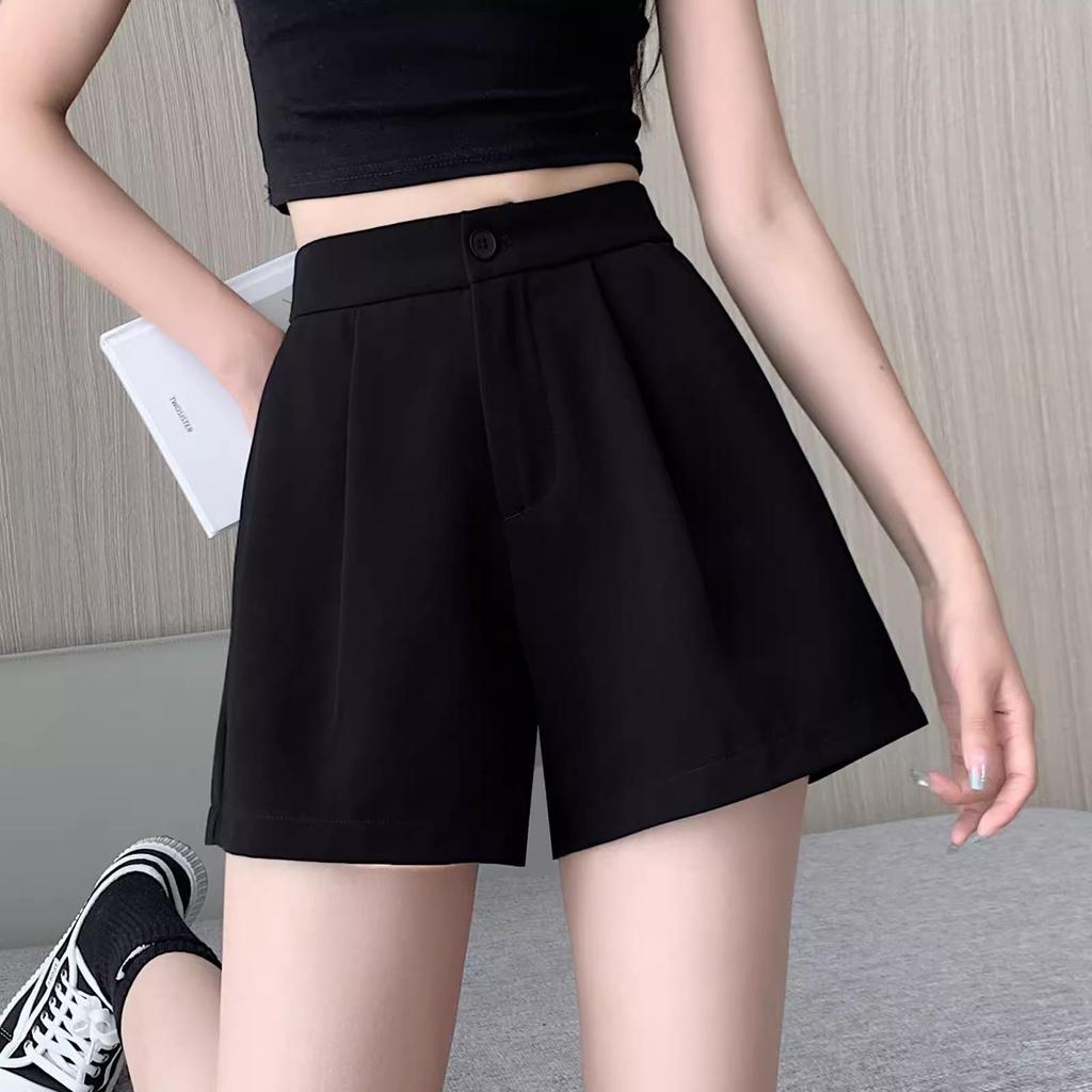 Women's 2024 French A-Line Black Summer Shorts - High Waist, Thin, Loose, Wide-Leg Design