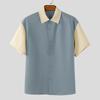 INCERUN Oversized Men Lapel Neck Patchwork Buttons Casual Shirts
