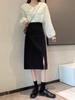 Introducing a chic and sophisticated addition to your wardrobe for Autumn/Winter 2025. This Women's High-End Black Midi Skirt features a drapey, slimming silhouette with a high-waisted pencil design that elegantly accentuates your figure. Made from premium polyester material, the skirt boasts a solid pattern and a stylish slit for added flair. The quilted decoration adds a touch of texture, making it a perfect blend of elegance and modern style. Ideal for both professional and evening settings, this skirt promises to become a versatile staple in your seasonal collection.