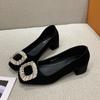 Temperament Single Shoes, Black Light Mouth Rhinestones, High Value, Fashionable Square Head Flat Bottom High Heels, Square Buckle Spring Models