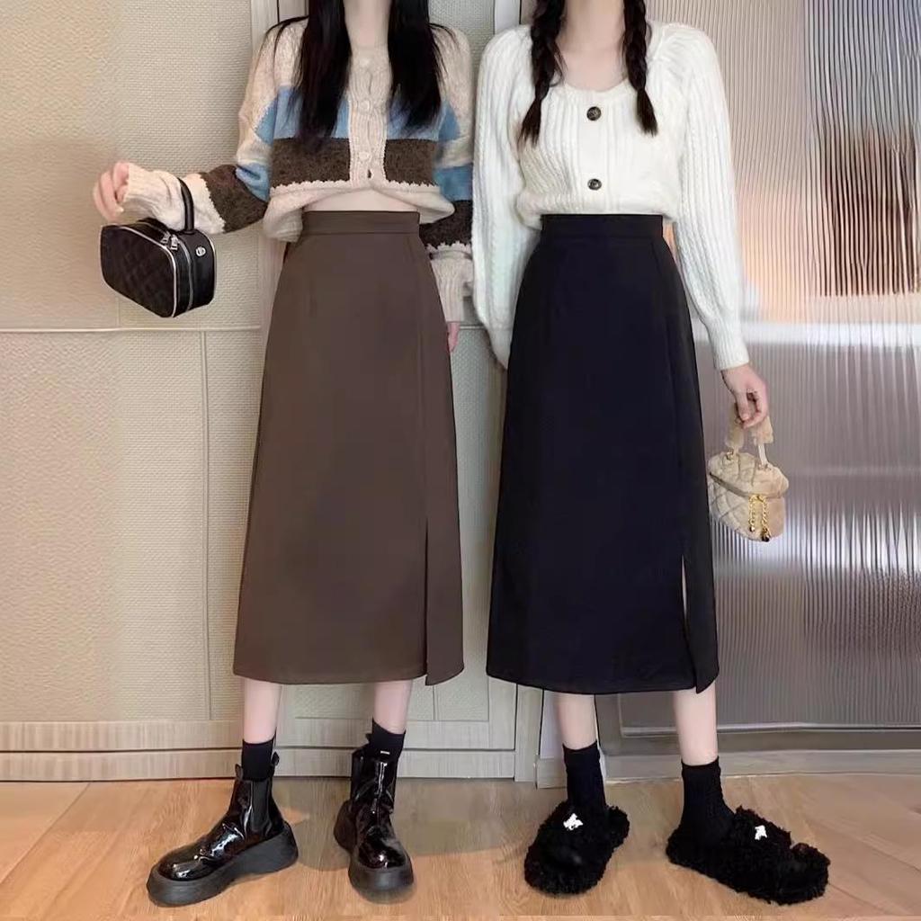 High-Waist Slimming A-Line Midi Skirt with Slit - 2024 Korean Style Summer Fashion for Petite Women