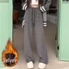 Experience ultimate comfort and style with these fleece striped wide-leg pants, perfect for the autumn and winter seasons. Designed with a high waist and a sportive flair, these pants effortlessly blend casual elegance with functionality. Made from a soft spandex material, they provide flexibility and warmth, ideal for those crisp, chilly days. Whether you're lounging at home or heading out for a casual outing, these pants are a versatile addition to your wardrobe.