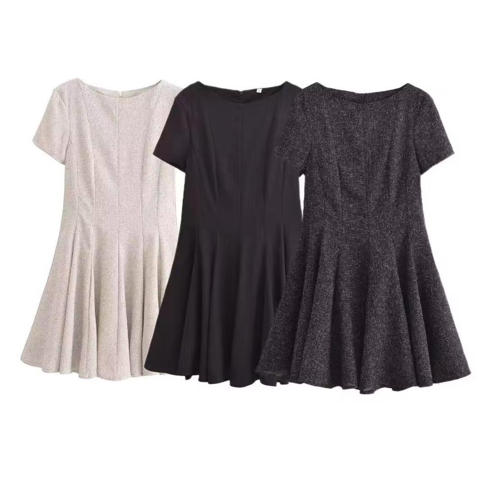 Spring 2025 Women's Slimming Short-Sleeve Dress with Round Neck