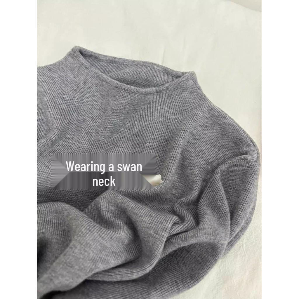 Women's High Neck Gray Sweater - Trendy, Soft, Knitted Base Layer for Autumn/Winter 2024