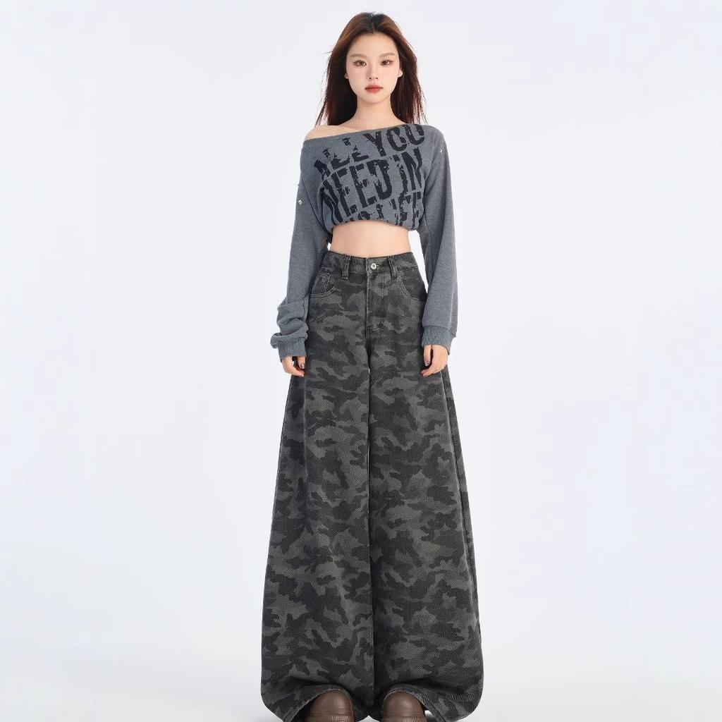 Experience effortless style and comfort with these women's wide-leg jeans, perfect for the spring 2025 season. Crafted from premium denim, these high-waisted pants feature a unique camouflage pattern, combining trendy American style with a modern, casual look. The slimming, loose-fit design ensures a relaxed yet flattering silhouette, making them a versatile addition to any wardrobe. Whether you're dressing up for a day out or keeping it laid-back, these jeans provide both style and ease for any occasion.