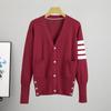 Elevate your wardrobe with this Women’s Red Knit V-Neck Cardigan. Crafted from premium viscose material, this trendy 2025 style cardigan features a solid pattern and a flattering slim fit. The design is accentuated with a classic V-neckline and long sleeves, making it perfect for layering in cooler months. Functional pockets add a touch of practicality to this chic, short jacket, blending fashion-forward appeal with everyday comfort.
