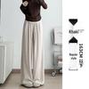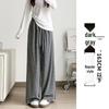 Autumn 2024 Women's Striped Wide-Leg Tie-Waist Pants - Casual, Floor-Length Trousers