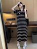 2024 Summer Striped Ice Silk Knit Polo Dress – Loose & Fashionable Design